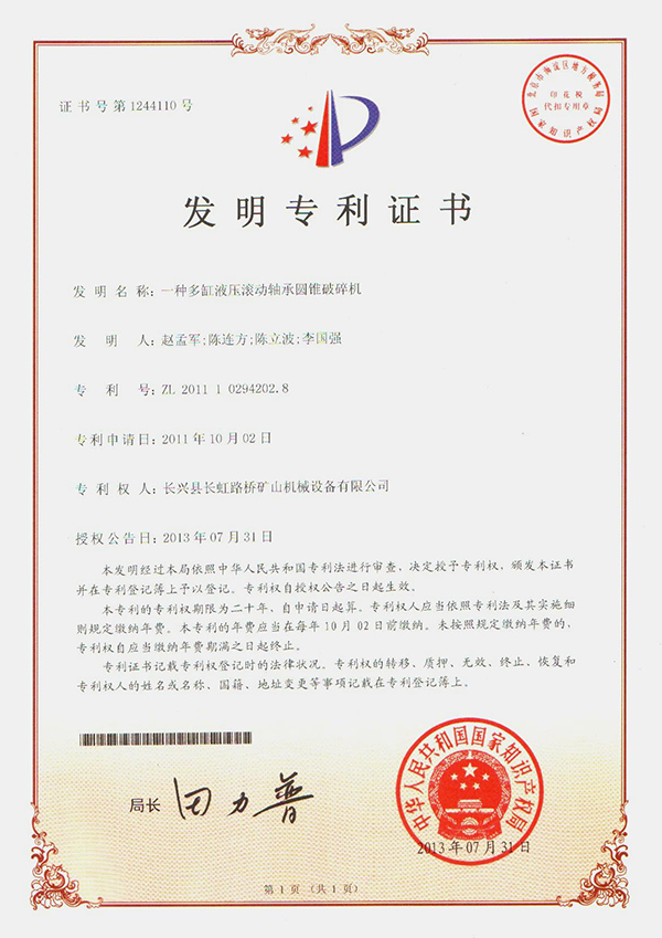 成功研制中國(guó)首臺(tái)高速滾動(dòng)軸承圓錐破碎機(jī)