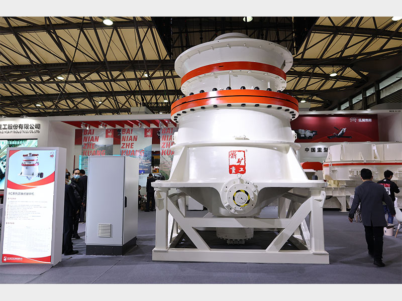 RC系列單缸液壓圓錐式破碎機工作過程中,電動機通過傳動裝置帶動偏心套旋轉,動錐在偏心軸套的迫動下做旋轉擺動,動錐靠近定錐的區(qū)段即成為破碎腔,物料受到動錐和定錐的多次擠壓和撞擊而破碎。動錐離開該區(qū)段時,該處已破碎至要求粒度的物料在自身重力作用下下落,從錐底排出。排料口的大小需要靠底部一個液壓缸的升降來調節(jié)。